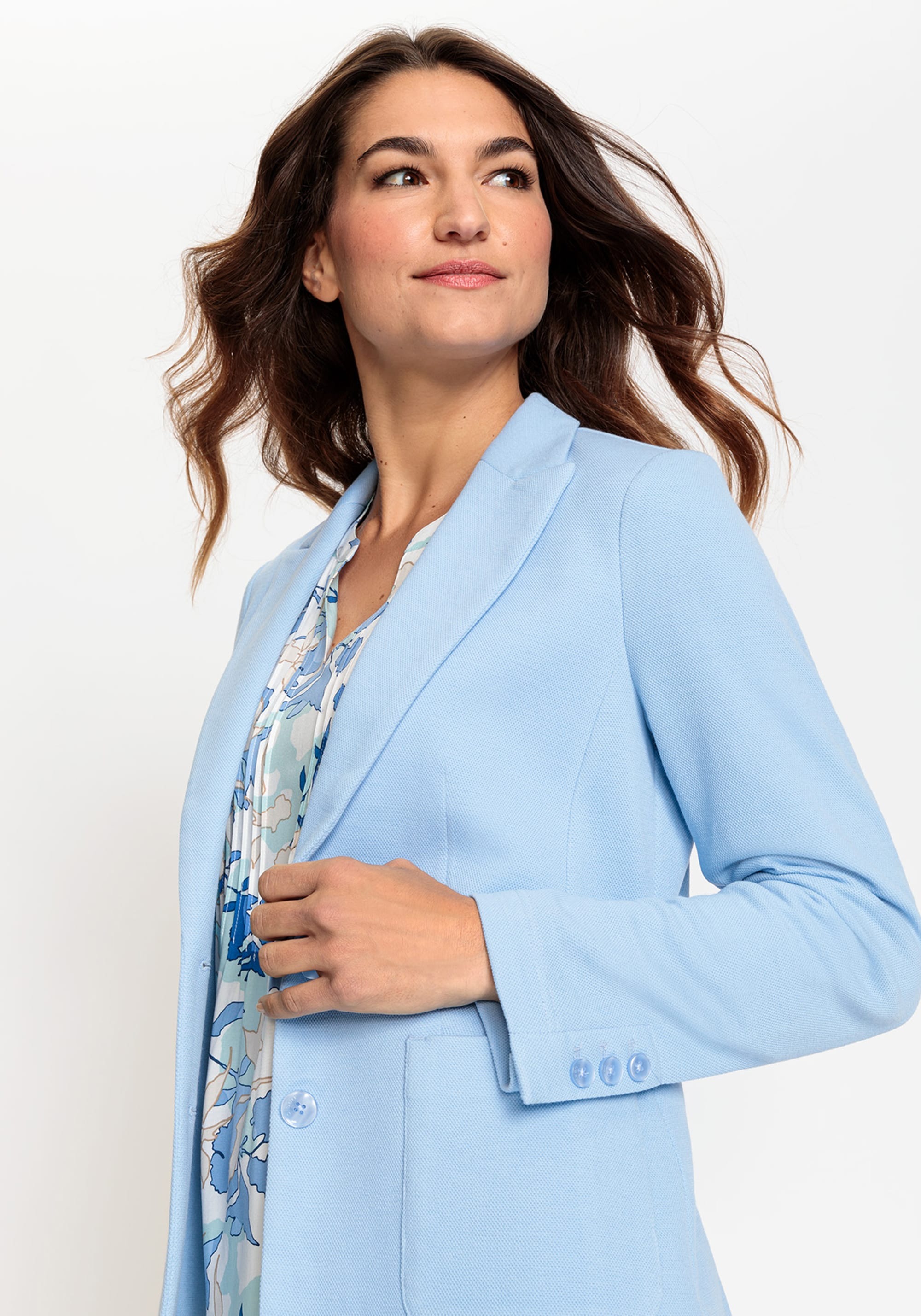 Смесь хлопка и достаточное количество эластичных материалов для комфорта делают этот пиджак привлекательным на каждый день. Модель с вырезом на талии, двумя передними карманами и застежкой на две пуговицы.
