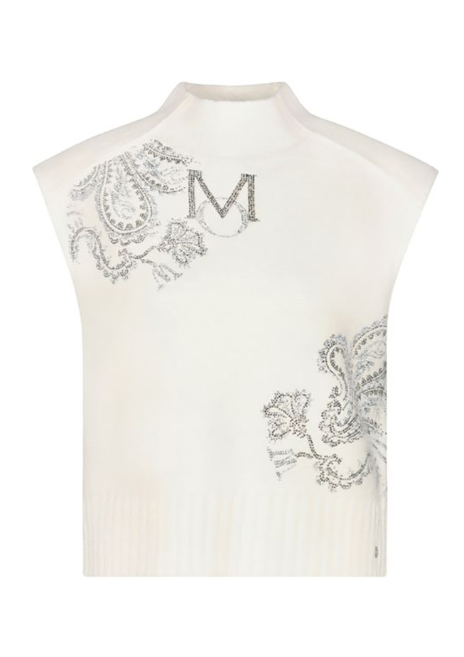 Шикарный жилет-свитер MONARI из высококачественной смеси хлопка с элегантными деталями из страз и классическим воротником-стойкой.